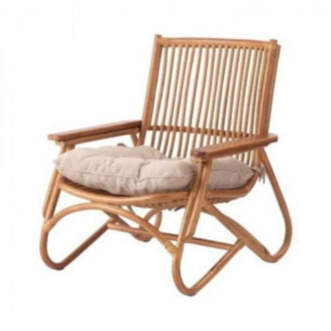 | ゆったりと座りやすい形状と、印象的なデザインが特徴です。掛けには天然木(チーク)を使用。天然木のぬくもりがしっかりと手に馴染みます。ラタン(籐)ならではの、しなやかで柔らかい曲線も魅力の1つです。背もたれには緩いカーブを掛けているので、ゆったりとくつろぐことができます。 ※北海道・沖縄・離島など一部地域にはお届けできかねますのでご容赦ください。 |