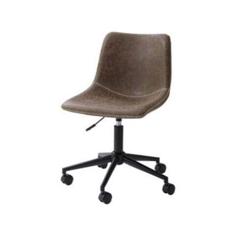 | 身体にフィットする曲線とステッチが特徴のデスクチェア。ソフトレザーの質感が手になじむ、品のある仕上がりになっております。昇降レバー付きで座面の高さ調整も簡単。座面は360度回転式なので、狭いスペースでも楽に立ち座りが可能です。デザイン性の高いチェアなので、リビング等でのワーキング用チェアとしてもおすすめ。 |