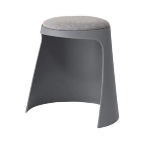 デザイン性と機能性、両方叶えるスタッキングスツール「カヌレ」。座面下に大きく空いた空間は、個性的なフォルムのデザイン性を高めるだけでなく、足を入れられる事で座りやすくなる機能性も兼ね備えています。座面にはファブリックを使用し、その座りやすさをより追求しました。