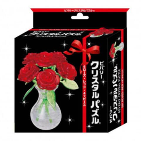 | このパズルは透明のピースを組み上げる立体ジグソーパズルです。完成すると、クリスタルのように美しく輝くインテリアとして楽しめます。想いを込めたギフトに最適な、花瓶に入った赤いバラが出来上がります。 |