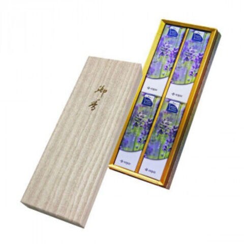 | お盆やお彼岸の折に、ご先祖様や故人に真心伝える香りのお供えを。爽やかなラベンダーをイメージした香りで、煙が少ないタイプのご進物用お線香です。お花の香りに天然消臭成分を配合しているため、気になるニオイを消しながらお花のやわらかな余香が広がります。外箱には環境に優しい再生板紙を利用した紙を採用。「心を込めたご進物」として質感・外観ともにご満足していただけるよう、箱には和風の上紙を施しました。 |