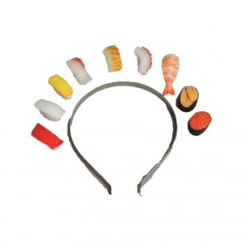 | 食品サンプルミニ寿司9貫セットのカチューシャです。 |
