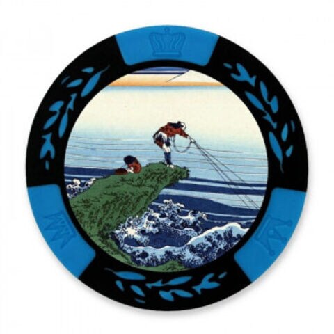 浮世絵が描かれたカジノチップマーカー。両面同デザインです。