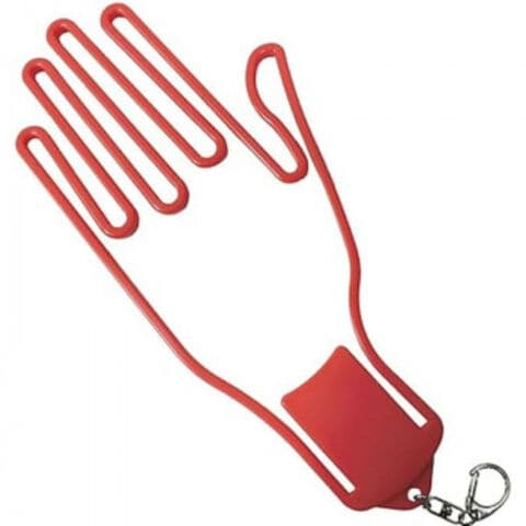 | こちらのグローブシェイパーに手袋をはめるだけ。そのまま干せば型崩れを起こしません。また、プレー後は手袋をハンガーに掛けて吊るせば、湿気が飛んで乾きやすくなって清潔です。金具フック付きなので持ち運びにも便利なおすすめグッズです。 ※金具のフックが付いている為、本品を洗濯機では洗えません。 |