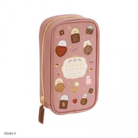 | 喫茶すみっコで1日かぎりのチョコレートフェアを開催。あこがれのチョコフォンデュをやってみたり、作ったチョコをこうかんしてワクワクしたり…「喫茶すみっコでチョコレートフェア」から、ポーチが登場。ガバッと開いて立てたまま使える、メイクなどに便利な縦型ポーチ。チョコレート型の引手がポイントです。 |