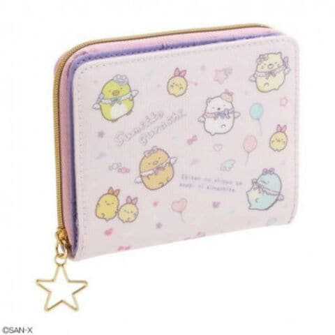 | 「天使なえびてんアイドル」テーマからワレットができました。すみっコたちとピンク&パープルのカラーリングがとってもキュート!星型の引き手付です。 |