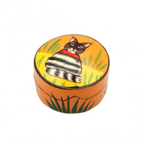 | インド、カシミール地方の伝統的な紙細工「ペーパーマッシュ」アイテム。紙と紙粘土で形を作り、手描きで素敵な柄を描いています。ネコの日常の様子が描かれた小さなサイズのボックスです。色違いで揃えたり、ピアスやリングなど小さなアクセサリーを収納するのにピッタリ。 ※職人さんの手作りのため形や絵柄、色合いにばらつきがございます。 |