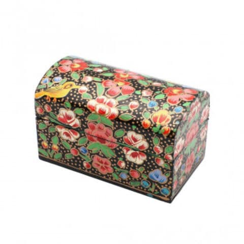| インド、カシミール地方の伝統的な紙細工「ペーパーマッシュ」アイテム。紙と紙粘土で形を作り、手描きで素敵な柄を描いています。可愛い小さなサイズのボックスです。色違いで揃えたり、アクセサリーを収納するのにピッタリ。 ※職人さんの手作りのため形や絵柄、色合いにばらつきがございます。 |
