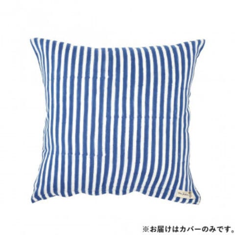 クッションカバー ストライプブロックプリント ブルー 11725883381