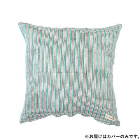クッションカバー ストライプブロックプリント ミントブルー 11725883384