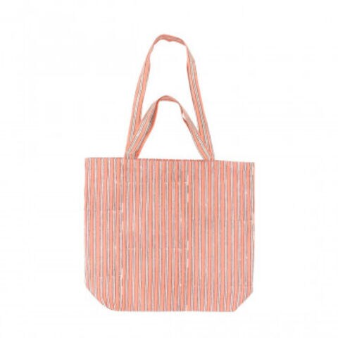 2ハンドルトートバッグ ストライプブロックプリント ピンク 11725750514