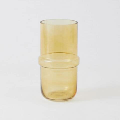 シンプルな中に少し個性のあるデザインのフラワーベースです。色付きなので茎部分が透けず、花の美しさが引き立つシルエットになっています。大きめの花や枝ものにもおすすめです。