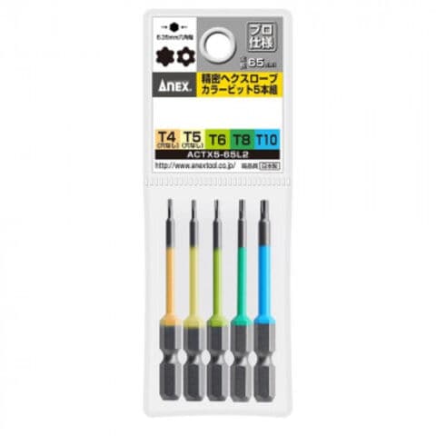アネックス(ANEX) ヘクスローブカラービット 5本組 65mm ACTX5-65L2