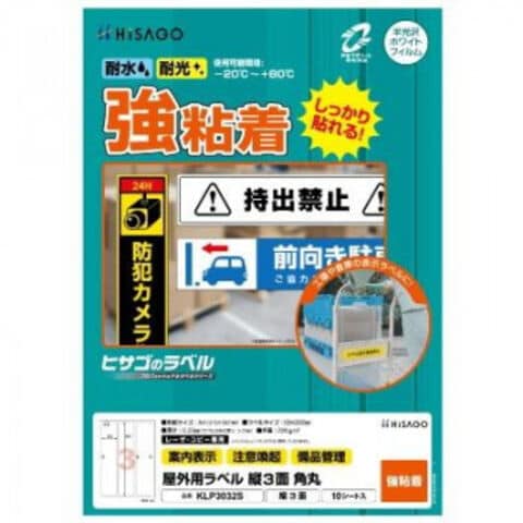 ヒサゴ 屋外用ラベル A4 縦3面 角丸 KLP3032S