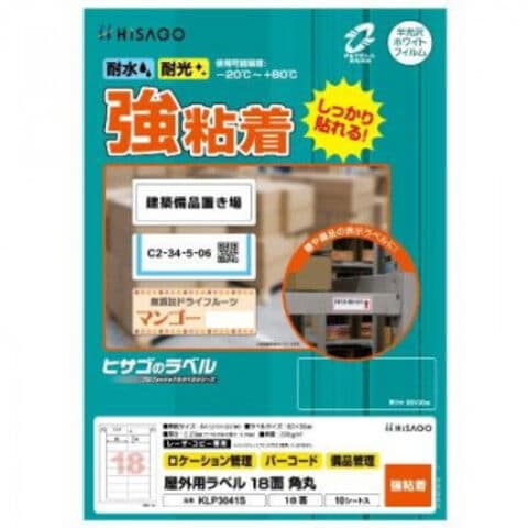 ヒサゴ 屋外用ラベル A4 18面 角丸 KLP3041S