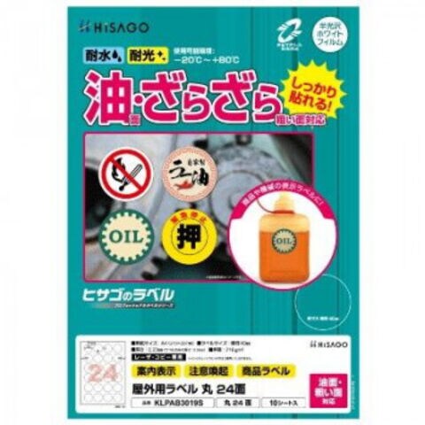 ヒサゴ 屋外用ラベル 油面・粗い面対応 A4 丸 24面 KLPAB3019S