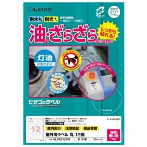 ヒサゴ 屋外用ラベル 油面・粗い面対応 A4 丸 12面 KLPAB3020S