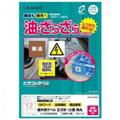 ヒサゴ 屋外用ラベル 油面・粗い面対応 A4 正方形 12面 角丸 KLPAB3040S