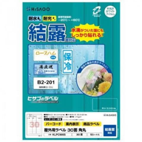 ヒサゴ 屋外用ラベル 結露面対応 A4 30面 角丸 KLPC900S