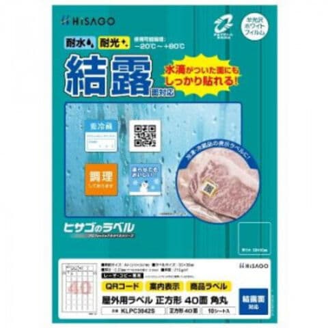 ヒサゴ 屋外用ラベル 結露面対応 A4 正方形 40面 角丸 KLPC3042S