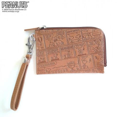 PEANUTS スヌーピー Fレザー(オールコミック)ジップケースキーリング付 ブラウン