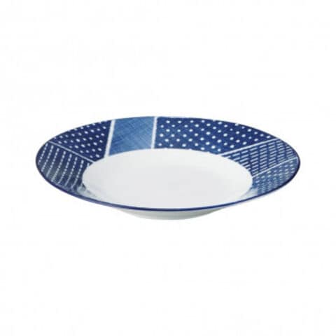 光洋陶器 花伝 古青藍 藍格子 27.5cm浅鉢 56783159