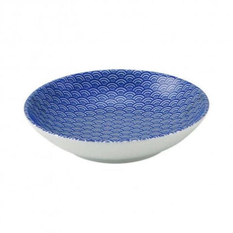 光洋陶器 花伝 青海波 青 17.5cm浅ボウル 52284014