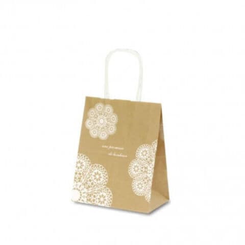 | 業務向けの手提袋。女性に人気のレースィシリーズです。カフェ(コーヒー&サンド)にもぴったりの人気サイズです。 |