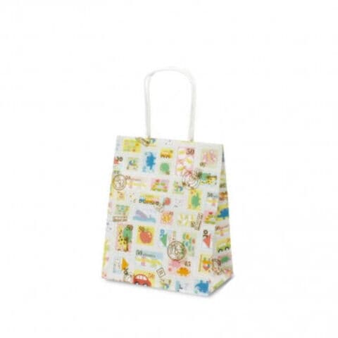 | 業務向けの手提袋です。キリンやヒヨコ、車や恐竜が描かれたかわいい切手柄です。お子様向けプレゼントや子ども会等でも活躍します。 |