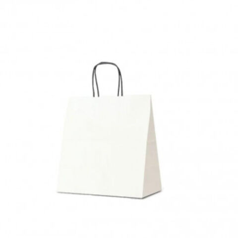 | 自動紐手提袋。業務向けの手提袋です。マチ広でケーキなどの箱物にも対応。持ち手が黒紐なのが特徴です。 |