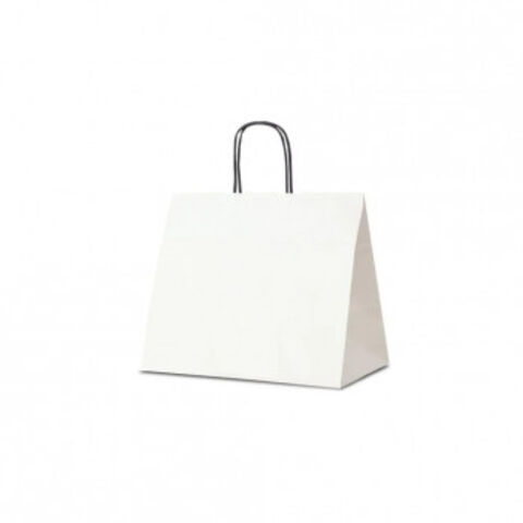 | 自動紐手提袋。業務向けの手提袋です。ナチュラルベーシックなクラフト無地。マチ広でケーキなどの箱物にも対応。持ち手が黒紐なのが特徴です。 |