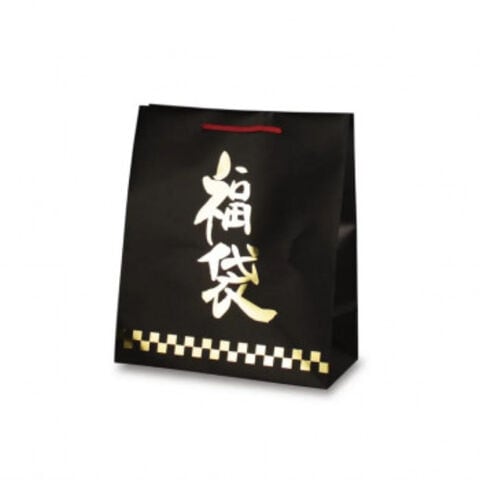 | マット仕上げの黒に金箔で輝く「福袋」の文字がシンプル配置されており、銘酒・銘菓・珍味・貴金属など最上質の商品にふさわしいアイテムです。 |