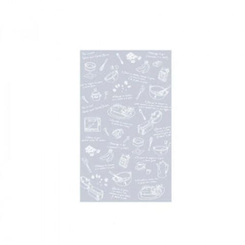 | 手書きの暖か味のあるタッチで仕上げたレシピが描かれたデザインです。白の印刷なので中に入れるものを選びません。 |