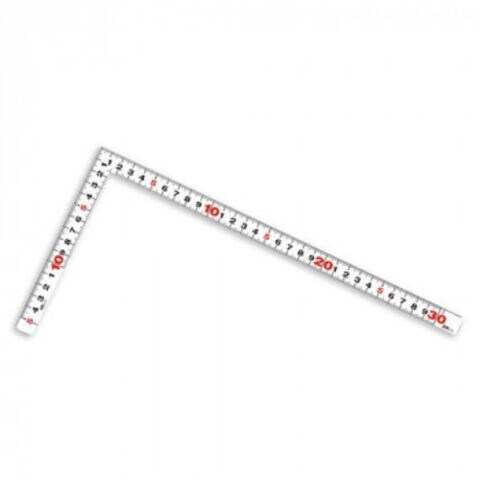 見やすい白地黒目盛です。竿・角共に薄く平たいので材料にピタリと張り付き、ケガキやすくなっています。材料や腰袋を傷つけない角丸形状です。外側基点の内目盛が付いています。