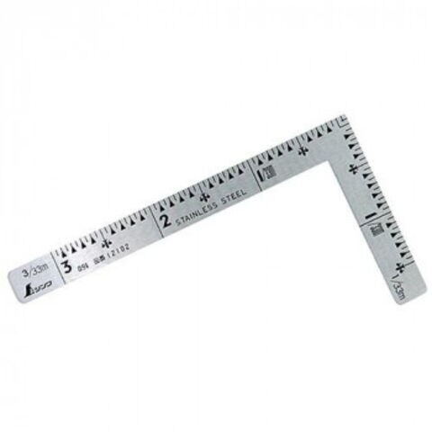 | 仕様 | 角部形状:同厚 表目盛 長枝:外目盛3寸 短枝:外目盛1.5寸 裏目盛 長枝:外目盛3寸 短枝:外目盛1.5寸 直角度:100mmにつき0.1mm以下 長さの許容差:±0.2mm |