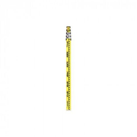 表面は10mm毎に読み取りやすい目盛線が入っています。また、50mm毎に赤い目盛線になっています。1m毎に地色が黄、白の順に交互になっているので、遠くから見てもすぐに何mなのか分かりやすくなっています。裏面は基準からの通し目盛が1mmピッチなので、外構工事などの測定も可能です。アルミ合金製で軽量、水にも強い構造です。