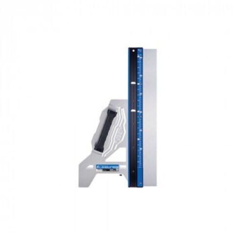 | スライド・ストップシステムを採用しました。通常はスベリ止ゴムが浮いている為、スムーズにスライドできます。取手を押さえると、スベリ止ゴム部分が下がって材料に密着し、ガッチリ固定できます。材料に当てて電気丸ノコを沿わせるだけで、直角に切断できます。メートルと尺相当の併用目盛です。軽さと頑丈さを両立したアルミ製の青地白目盛のガイドです。 |