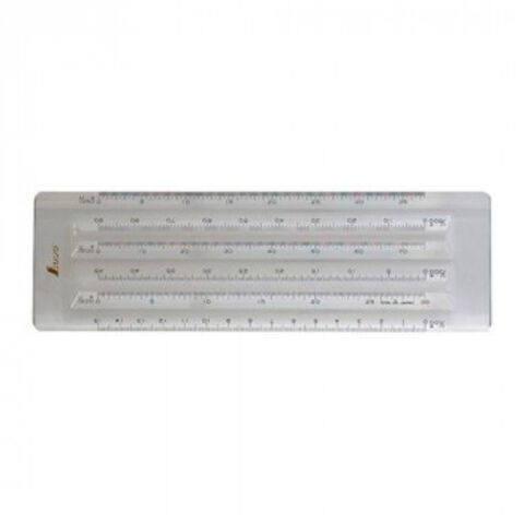 | 三角スケールの機能を持ったスケールです。透明なので、図面などの上に置いても下が見え、作業がラクに進められます。 |
