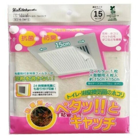 トイレ浴室換気扇フィルター ペタッとキャッチ 15cm用 SE316-5W15