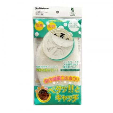 24時間換気扇にも取り付け可能です。光触媒セラミックスの抗菌・防臭効果で雑菌の繁殖を抑え、タバコ・ペットなどの気になる臭いも防ぎます。圧力損失(空気抵抗)が少なく抗菌防臭効果のあるフィルターを使用しております。再生PETを使用したフィルターを使っております。