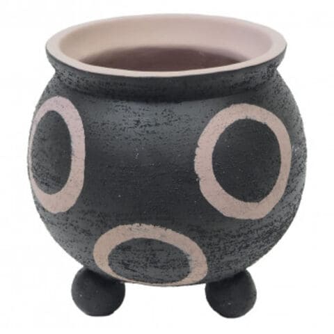 | 丸の模様が可愛い、コロンとしたフォルムのポット。 |