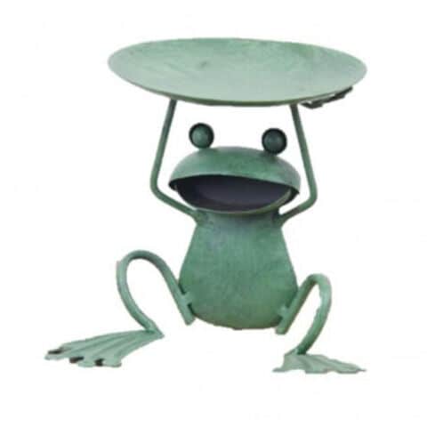 お皿が付いたユニークなデザインの、カエルのオブジェ。