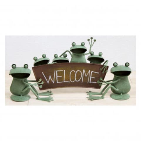 | 「welcome」と書かれたボードを持った、カエルのオブジェです。 |
