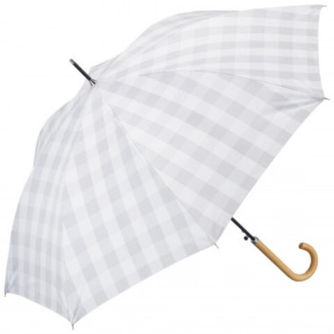 Waterfront サンシェイドロング 長傘 55cm ブロックチェック ライトグレー S155-1142GY2-BE