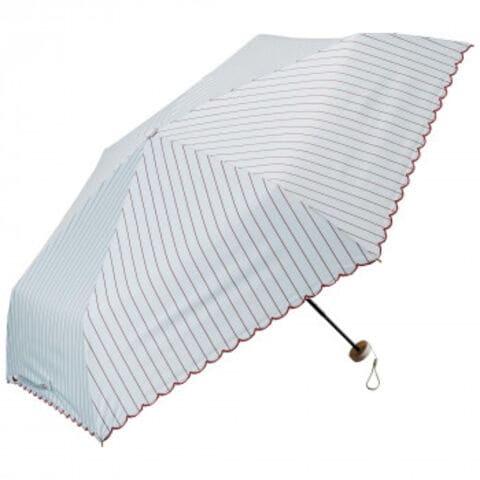| 開くと通常サイズ、たたむとコンパクトです。UVカット率99.9%、高い遮光・遮熱性。マルシェの屋根をイメージしたパターン。細いストライプと裾の刺繍が繊細でこだわりのあるデザインです。 |