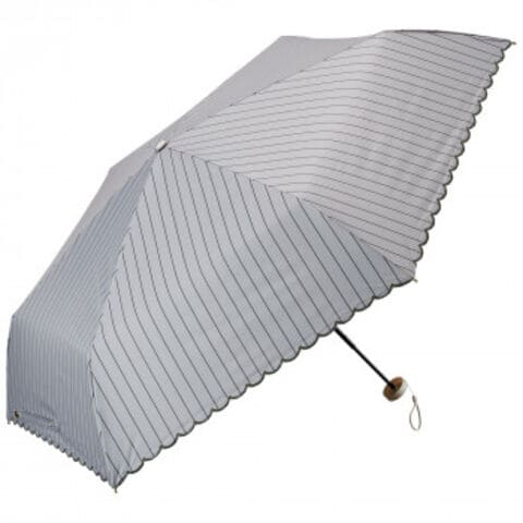 | 開くと通常サイズ、たたむとコンパクトです。UVカット率99.9%、高い遮光・遮熱性。マルシェの屋根をイメージしたパターン。細いストライプと裾の刺繍が繊細でこだわりのあるデザインです。 |