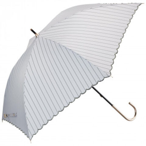 | 人ごみの中でも使いやすい大きさと軽さの傘。UVカット率99.9%、高い遮光・遮熱性。マルシェの屋根をイメージしたパターン。細いストライプと裾の刺繍が繊細でこだわりのあるデザインです。 |