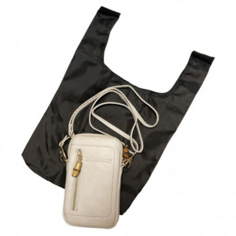 | 幅広20cmのコンビニサイズエコバッグが付属されたスマホポシェット。ソフトタッチのシュリンクフェイクレザーを使用し、バンブーの引き手がワンポイント。前面のファスナーポケットにお金が収納でき、カードポケットが4つ。中央のファスナーポケットにスマホとエコバッグを収納すればこれ一つでちょっとしたお出かけに最適。 ※お使いのパソコン・モバイルのモニターによっては、実際のお色と若干違いが出る場合が御座います。予めご了承下さい。 ※本商品はスマートフォンを保護するものではありません。 |
