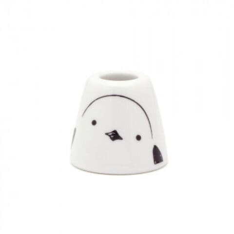 小さくて、真っ白で、モフモフの丸いフォルムにつぶらな瞳とおちょぼ口、かわいさを集めたアイドル、シマエナガのハブラシスタンドです。ひょっこりのぞいた愛嬌のある姿に思わずにっこり。ラフなラインで描かれたシマエナガに癒されるデザイン。後ろには尾羽も描かれていて、かわいい後ろ姿になっています。底のない形は水が溜まらず、お手入れも簡単。