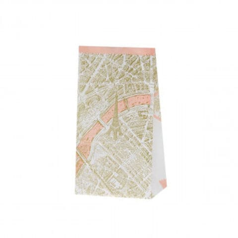 | パリの街並みがプリントされた紙袋です。雑貨の包装などさまざまなシーンで活躍すること間違いなし。 |